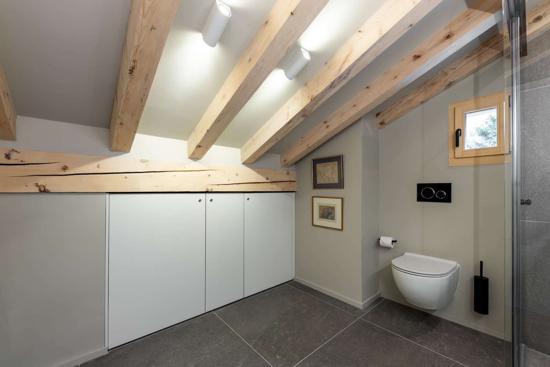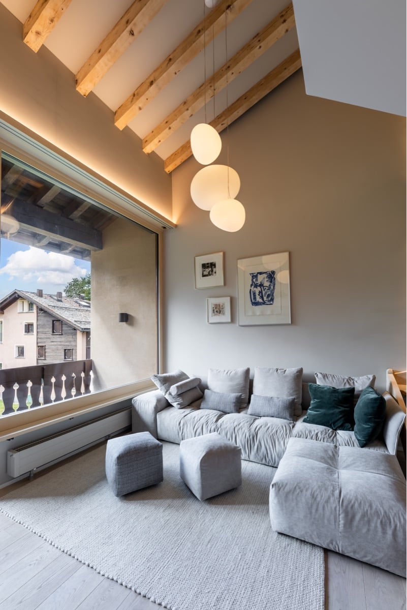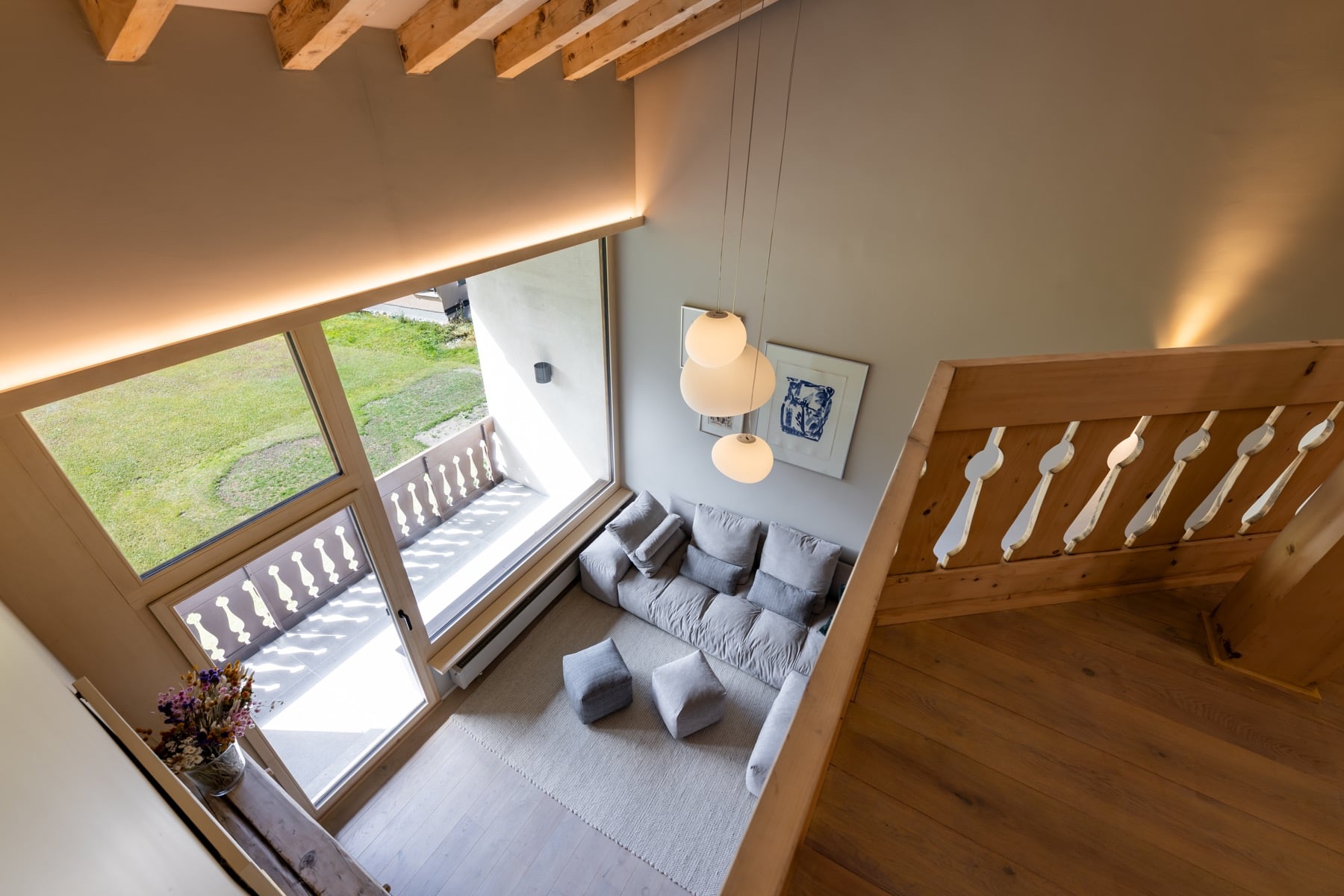 In der oberen Etage der Wohnung befinden sich ein luxuriöses Schlafzimmer und ein Badezimmer mit Dusche. In der unteren Etage befinden sich das Wohnzimmer sowie die beiden kleineren Schlafzimmer mit angrenzenden Bädern. Das Wohnzimmer ist mit einer Holzdecke bedeckt und ist stolz auf ein extravagant großes Fenster und einen großen Balkon, der einen atemberaubenden Blick auf das Engadiner Tal der Schweizer Alpen bietet, ungehindert von Gebäuden oder Strukturen. Der Küchenbereich mit seinen luxuriösen Geräten und Einrichtungsgegenständen wird selbst den anspruchsvollsten Ansprüchen gerecht.
