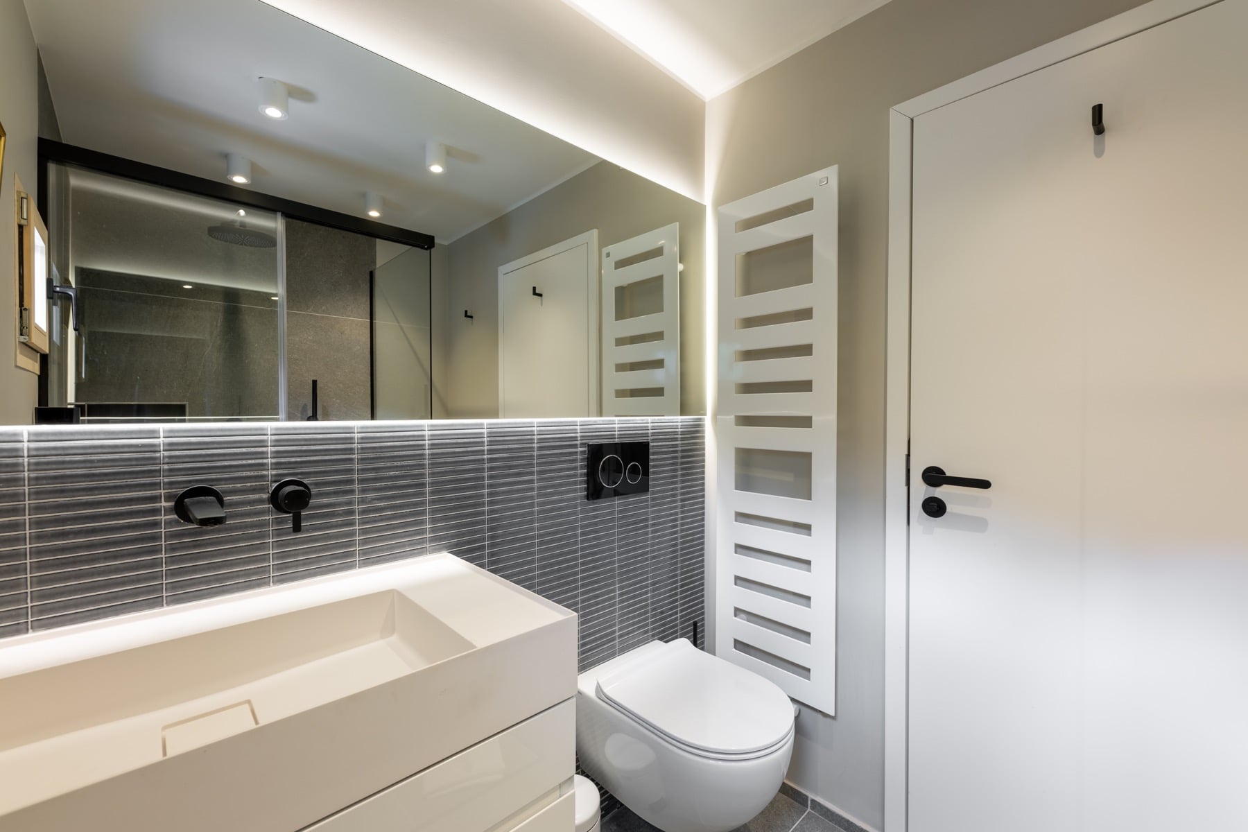A sauna, a laundry room, a bike room, and a ski room are available in the public areas together with a parking place in the garage directly under the building.