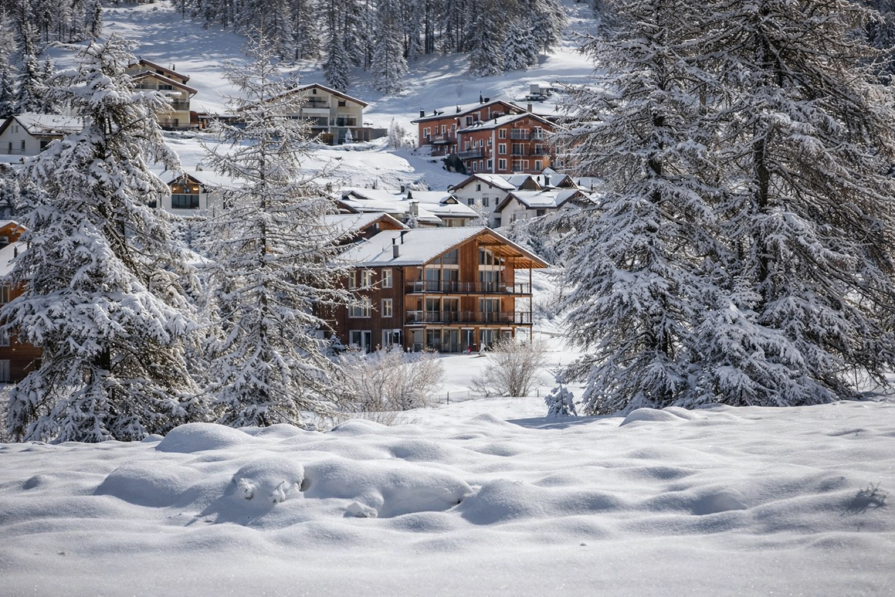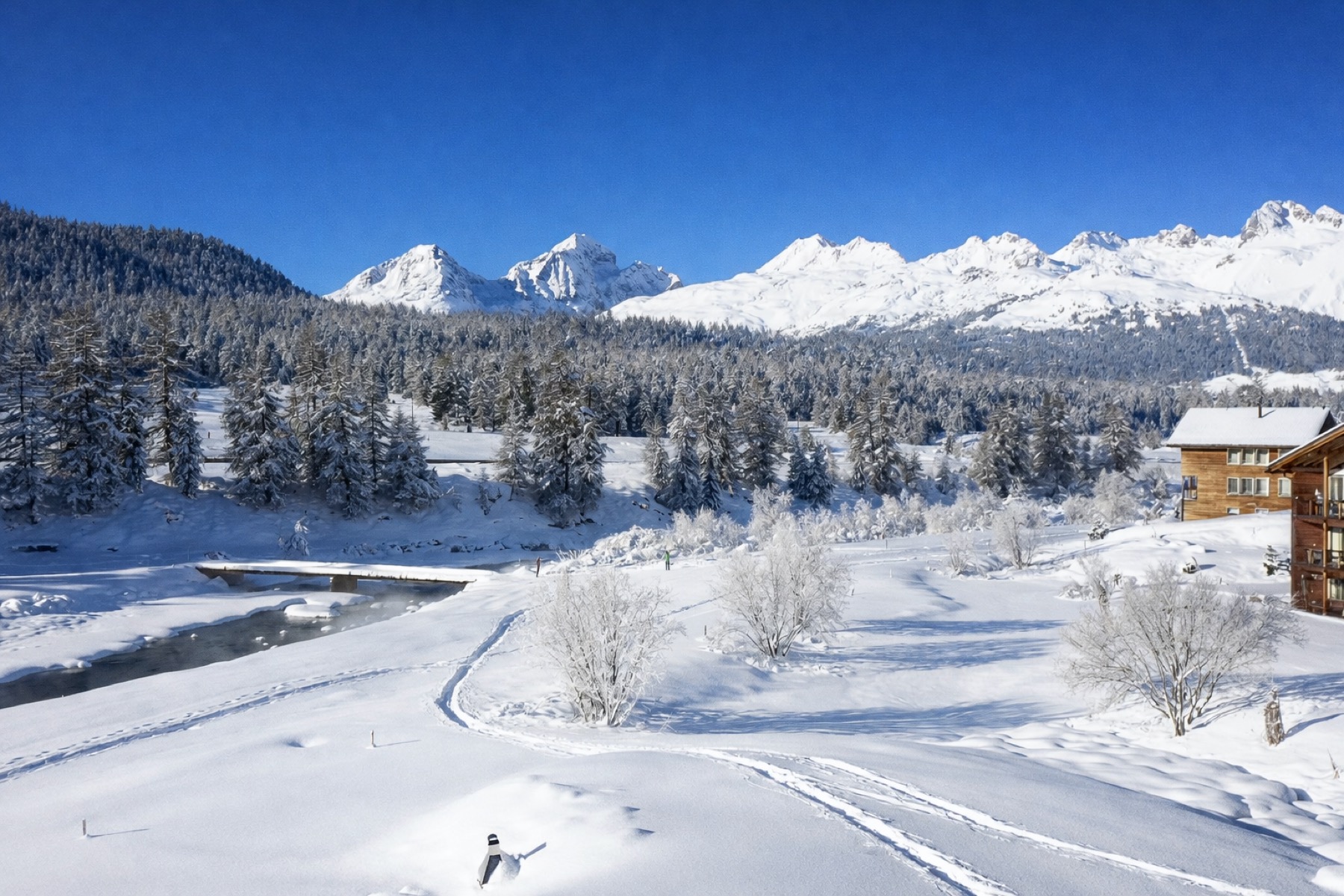 Pontresina offers direct access to a wide range of outdoor activities, including cross-country skiing, skiing, hiking, mountain biking and ice climbing. Restaurants, shops and wellness facilities are close by, while St. Moritz is only minutes away, with excellent public transport connections to the surrounding Upper Engadin.