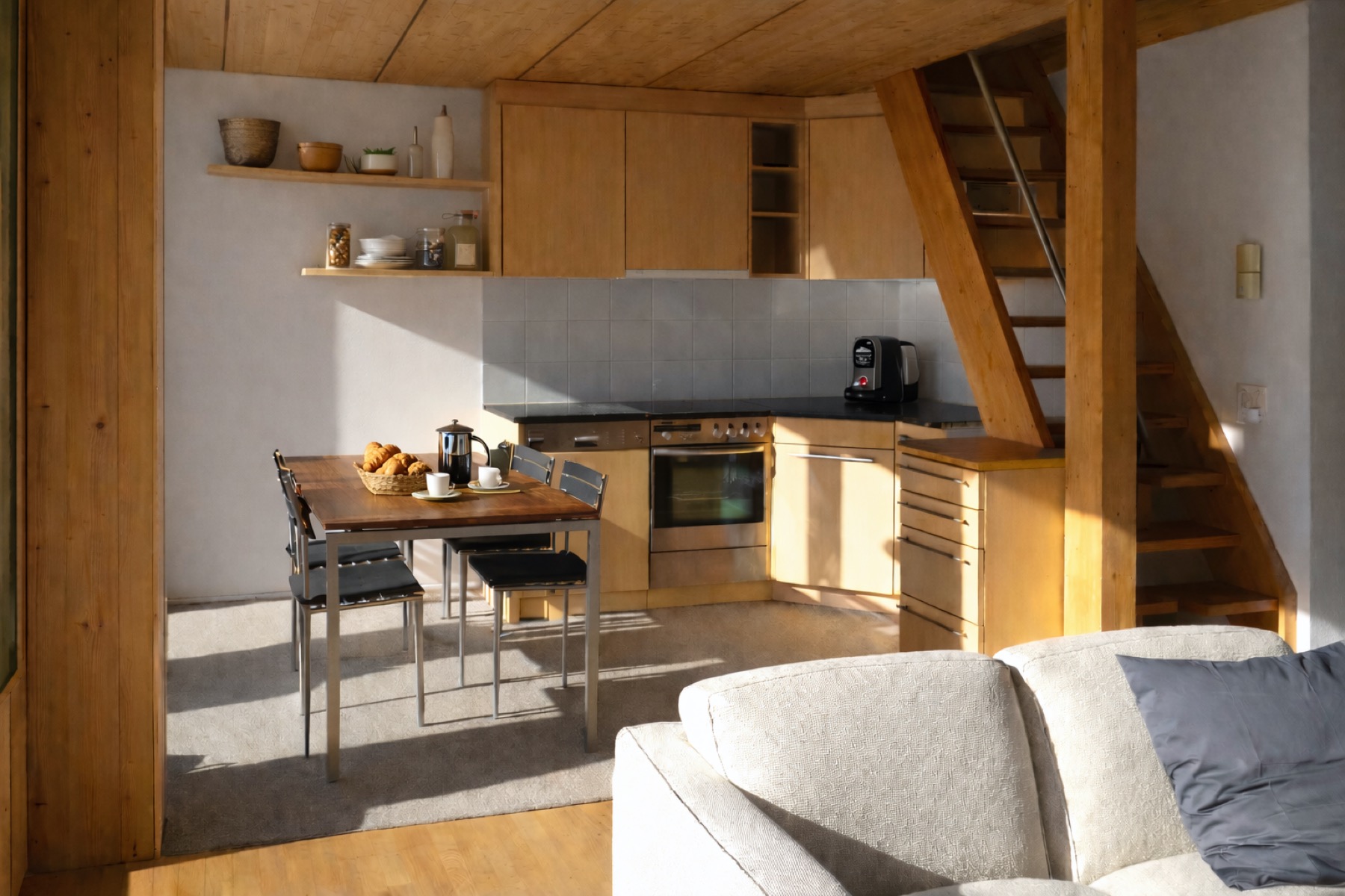 Light wood ceilings and high-quality wooden floors create a warm, contemporary alpine atmosphere throughout. The understated interior design is designed for comfort and suits both short winter stays and longer summer holidays.