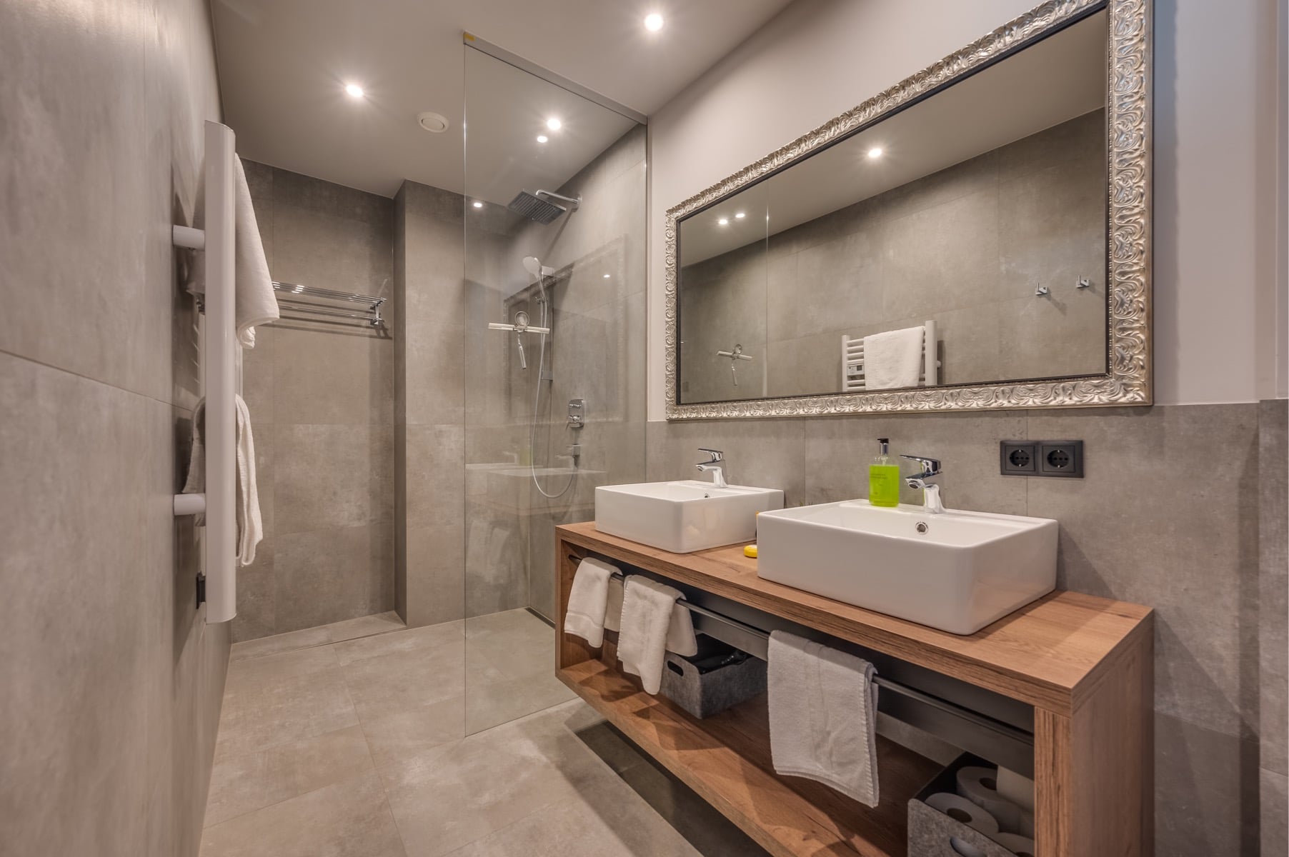 The ski room has two lockable ski/snowboard boxes belonging to the apartment, complete with integrated boot heating. Two covered car parking spaces with enough space for bicycles and/or scooters also belong to the apartment.