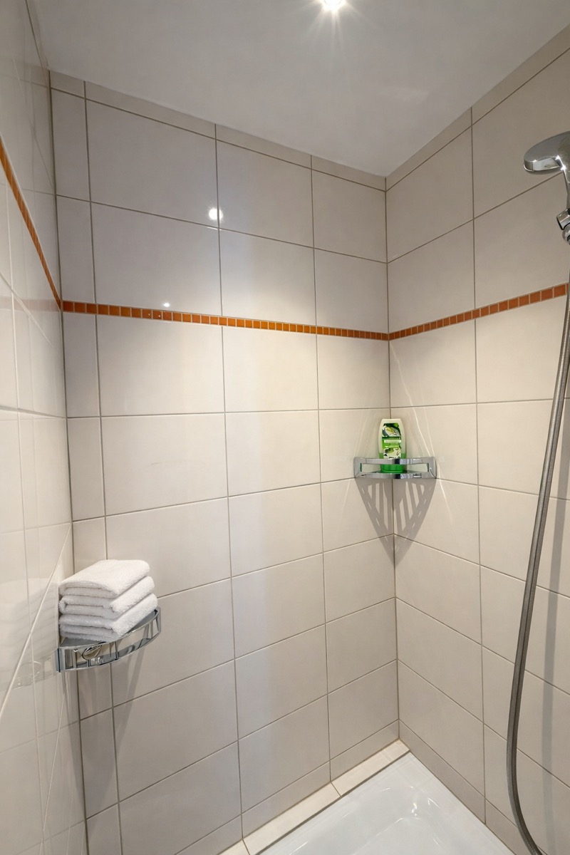 The kitchen, large dining table and living area are combined in one open-plan space, creating a bright and welcoming living area for shared meals and relaxed evenings. The fully equipped kitchen, high-speed fibre internet, Wi-Fi, TV and hi-fi system ensure comfort for longer stays.