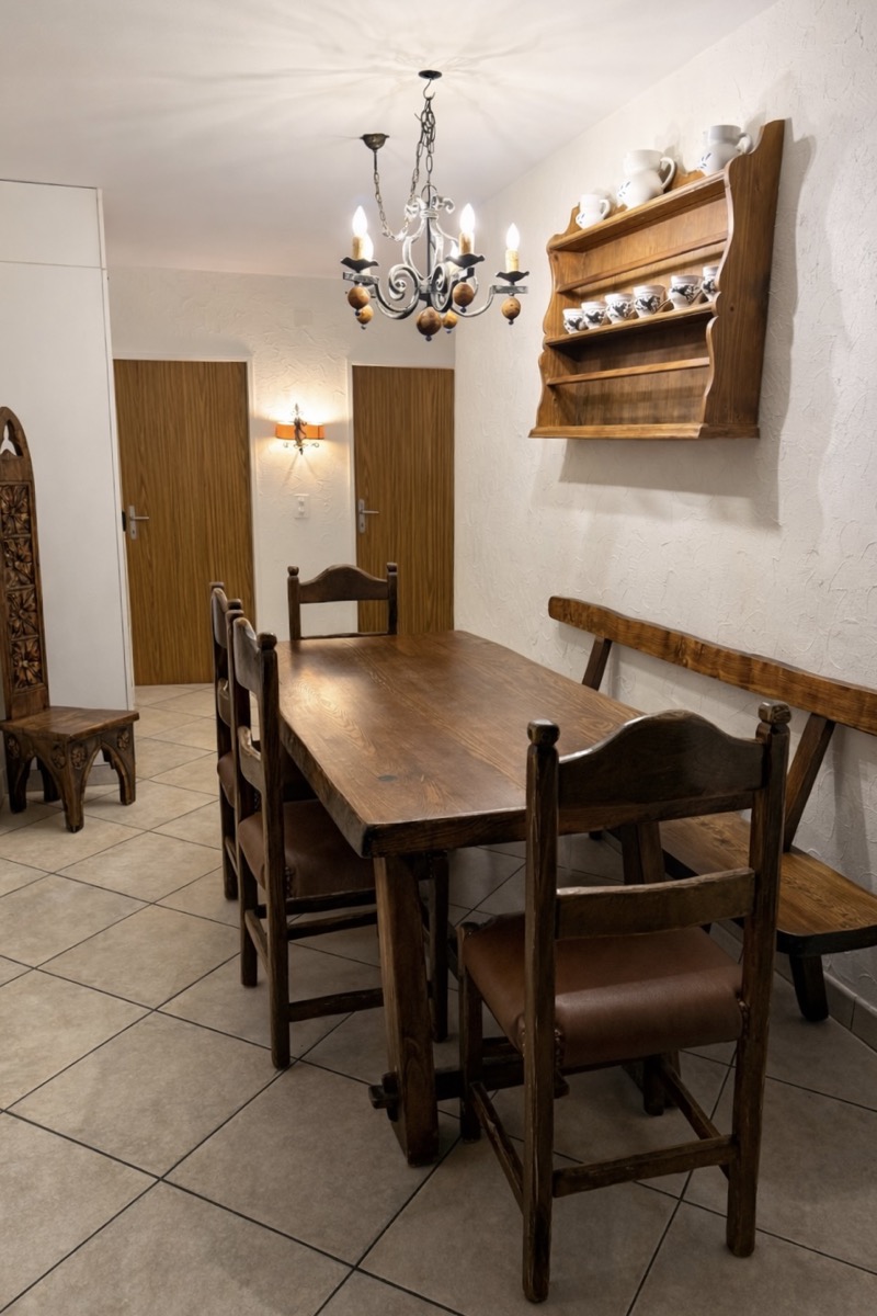 The interior reflects a traditional Alpine style with classic, lived-in charm. It is well maintained and functional, ideal for guests who value location, space and views. The layout includes two bedrooms and two bathrooms (bathtub & shower), providing comfort and privacy for families or small groups.